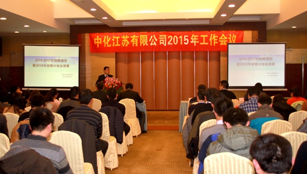 Sinochem Jiangsu held working conference of 2015 at Nanjing Zhongshan hotel on Feb. 9th, 2015. All the staff attend the meeting. Mr. Liang Xiaochen from Huam Resources Dept. in Sinochem Corporation came all the way from Beijing to Nanjing for this meeting.