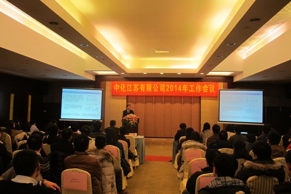 Sinochem Jiangsu held working conference of 2014 at Nanjing Zhongshan hotel on Feb. 8th. All the staff attend the meeting. Mr. Deng Yiyuan from Stratigic Planning Dept. in Sinochem Corporation came all the way from Beijing to Nanjing for this meeting.