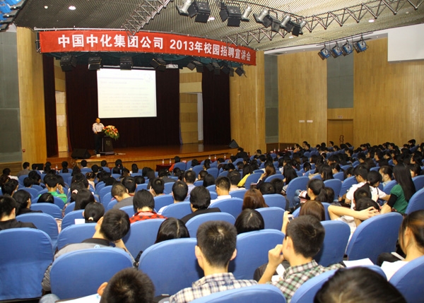 The manager of Sinochem Jiangsu HR, Ms Zhou Jingwen, introduced to the grad-uates of 2013 campus recruitment and answered the questions of the students about the applicationlink on the internet. The students submitted their resume after the end of the lecture. All the companiesinvolved had achieved a very good harvest.